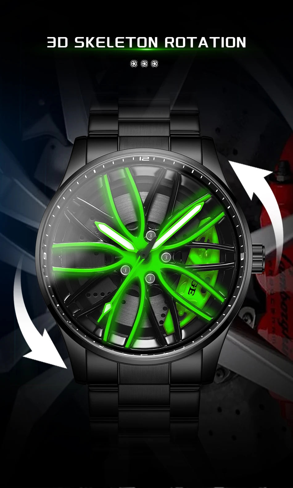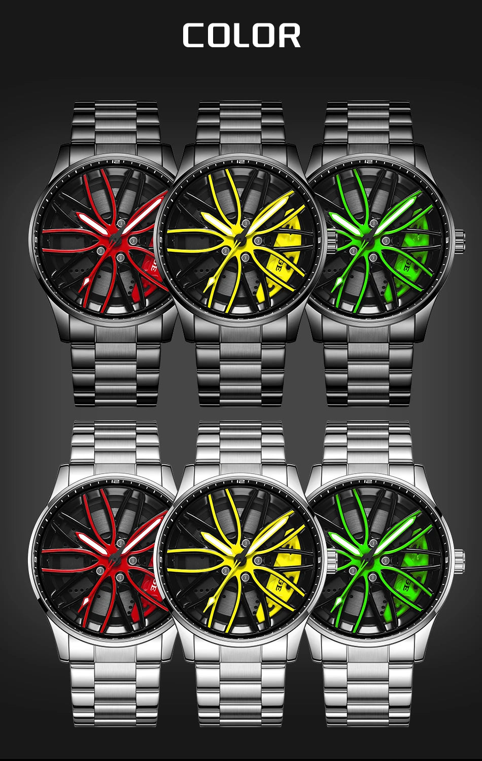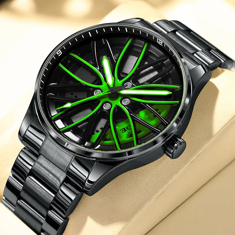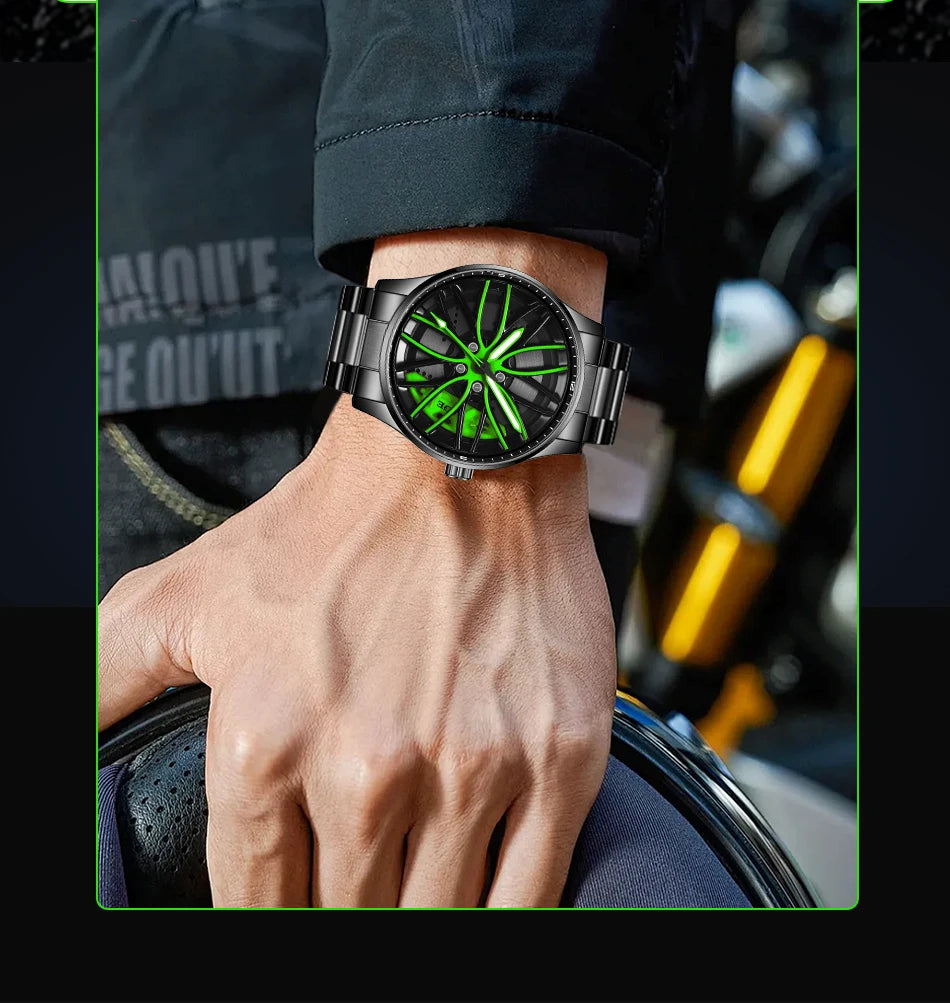 Cada reloj de nuestra colección de relojes con forma de llanta de coche está meticulosamente diseñado para rendir homenaje al arte de la ingeniería automotriz. Desde esferas mecanizadas con precisión hasta una estética atrevida inspirada en las ruedas, cada reloj refleja el espíritu de los vehículos de alto rendimiento, creados para aquellos que aprecian el diseño, la velocidad y los detalles.