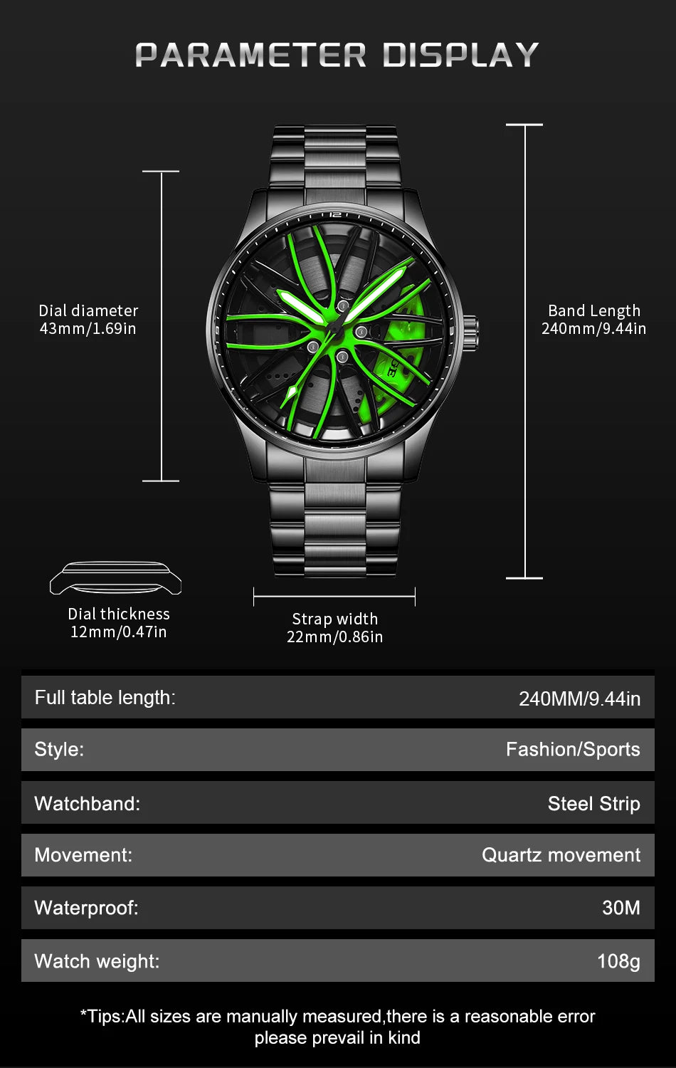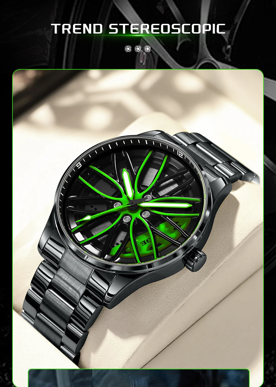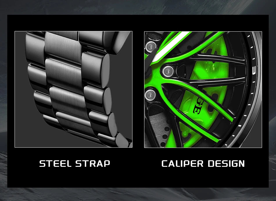 Cada reloj de nuestra colección de relojes con forma de llanta de coche está meticulosamente diseñado para rendir homenaje al arte de la ingeniería automotriz. Desde esferas mecanizadas con precisión hasta una estética atrevida inspirada en las ruedas, cada reloj refleja el espíritu de los vehículos de alto rendimiento, creados para aquellos que aprecian el diseño, la velocidad y los detalles.